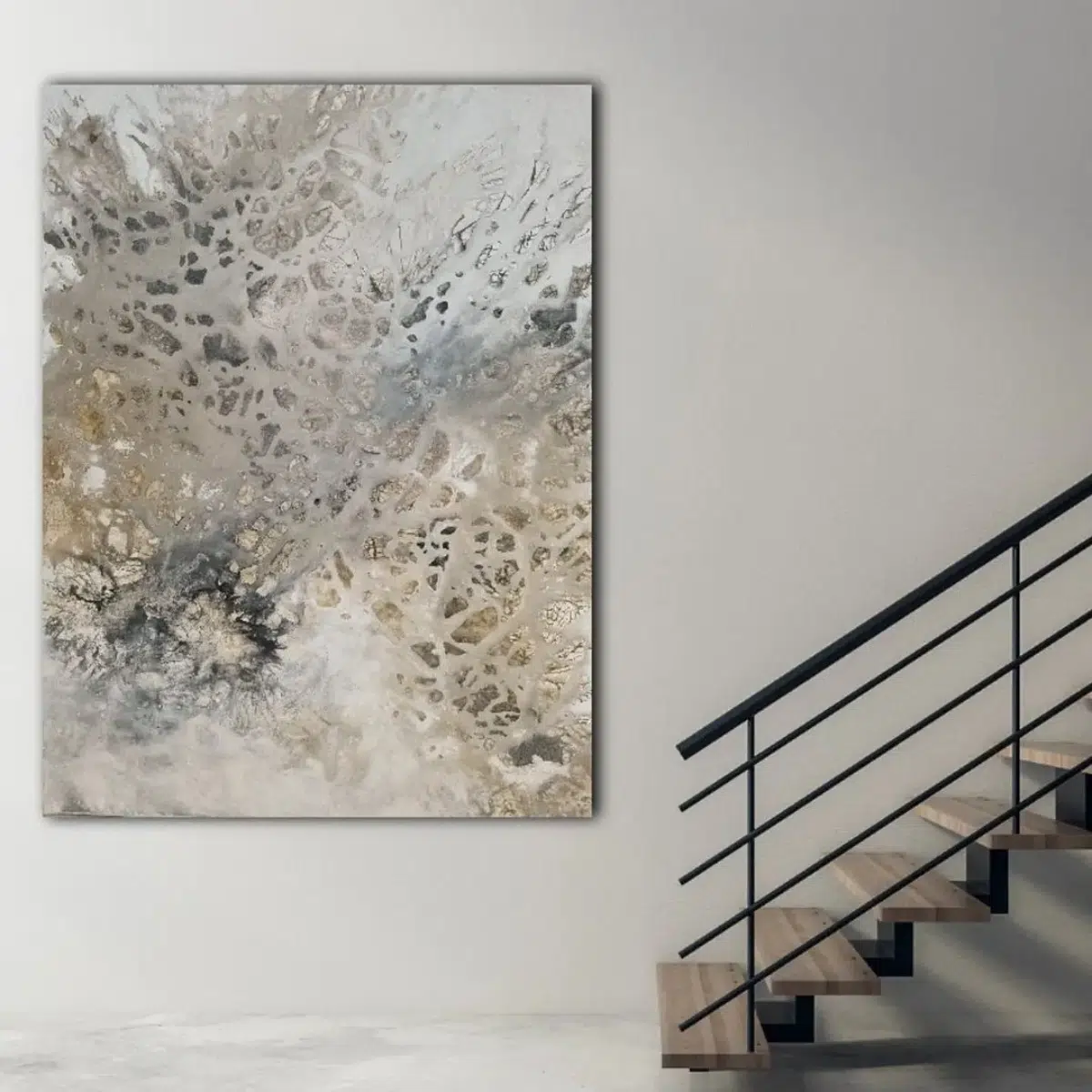 Mine malerier er inspireret af naturen, især havet og dets bevægelser. Jeg er særligt fascineret af bølgernes spor i sandet – de bløde linjer, der bliver efterladt, og som fortæller historier om bevægelse og forandring. Også vandets evne til altid at finde vej – uanset sten eller forhindringer – rører noget i mig, og den følelse prøver jeg at få med i mine værker.