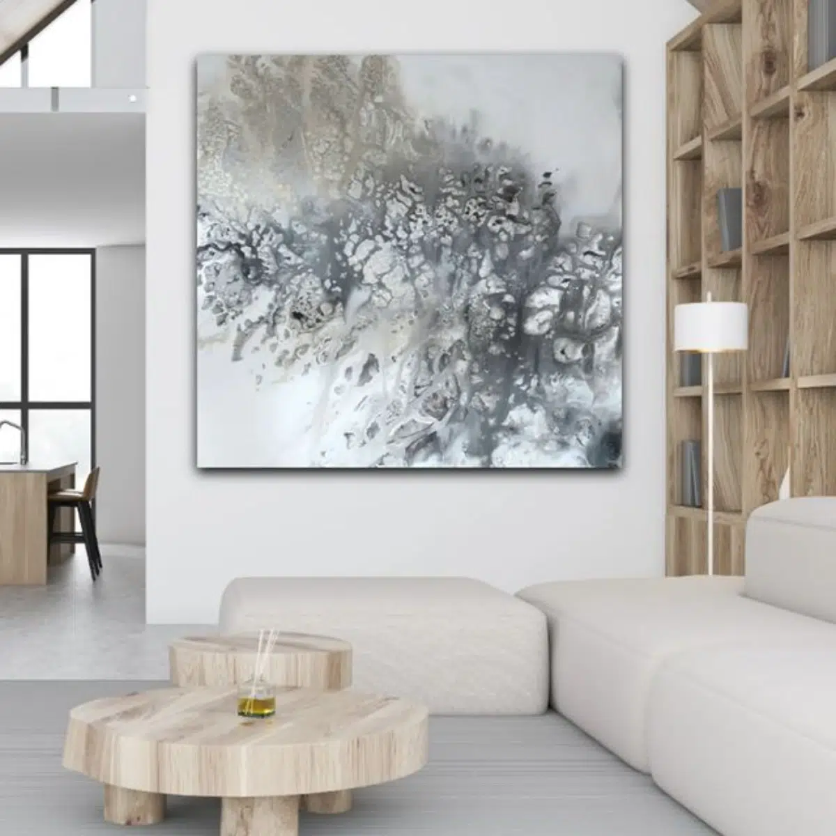 Jeg arbejder med både store og små malerier. Nogle er rolige og minimalistiske, andre har mere dybde og struktur. Fælles for dem er, at de er skabt med en intuitiv og sanselig tilgang – og med ønsket om at skabe noget, der giver ro, stemning og nærvær i et rum.